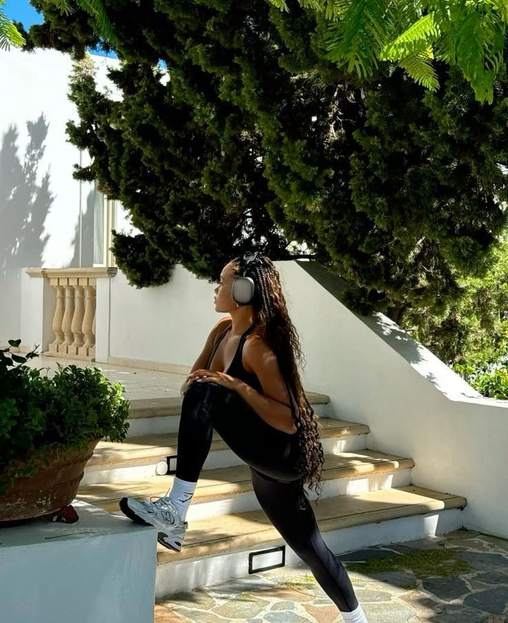 A composição busca transmitir calma, disposição e conexão com o corpo, destacando atitudes positivas e movimentos suaves.